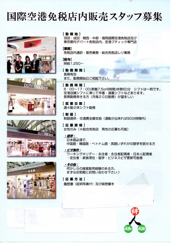 일본내 있는 국제공항엥서 근무하는 스텝을 모집합니다.